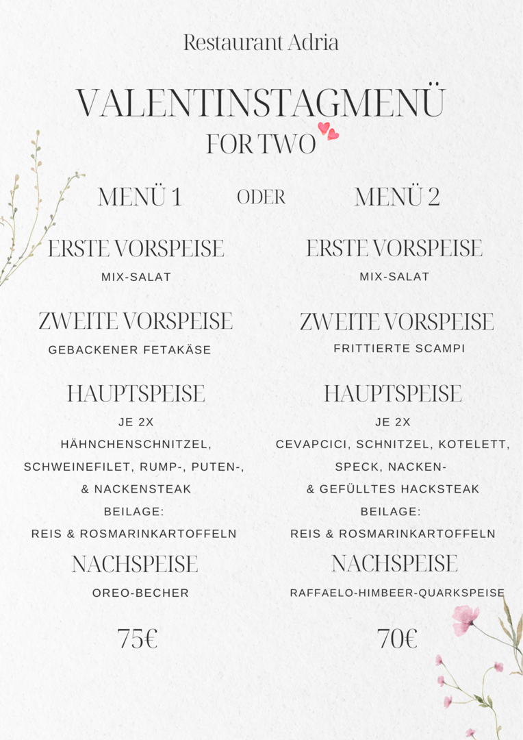 Feiert die Liebe und verbringt am Samstag, den 14.02.2026, einen romantischen Abend bei uns.